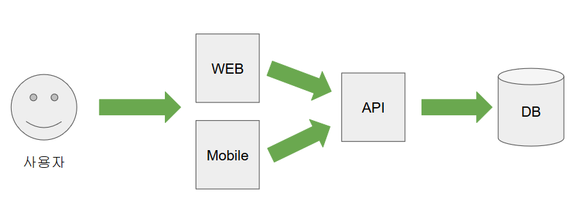 일반적으로 여러명이서 개발하는 웹 서비스에서 단일 프로젝트가 DB에서 데이터를 가져오고, 화면을 그려주고, 회원정보를 저장하는등 모든것을 담당하진 않는다. 아무리 간단한 구조라해도 아래와 같은 형태정도는 유지한다.