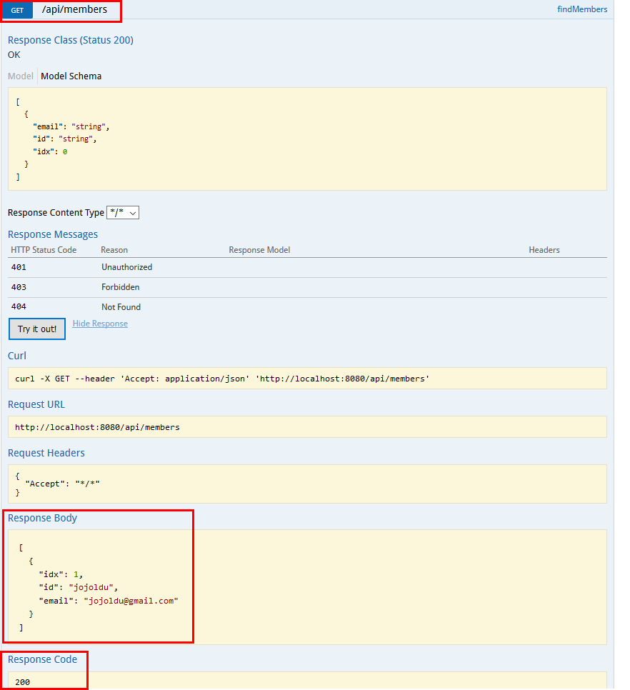 value를 채웠으면 아래의 Try it out! 버튼을 클릭해보자. 그러면!