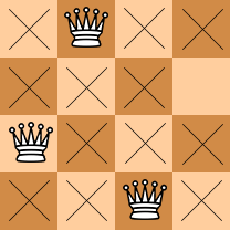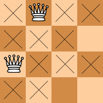 2. 다음 열에서 퀸을 놓을 수 있는칸에 다른퀸을 추가한 뒤, 놓을 수 없는칸을 표시