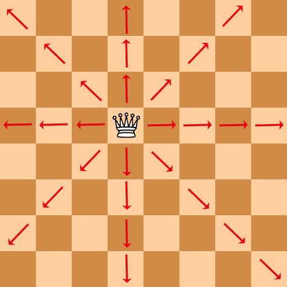 ※ 퀸은 위와같이 직선과 대각선 방향으로의 이동 제한이 없다.