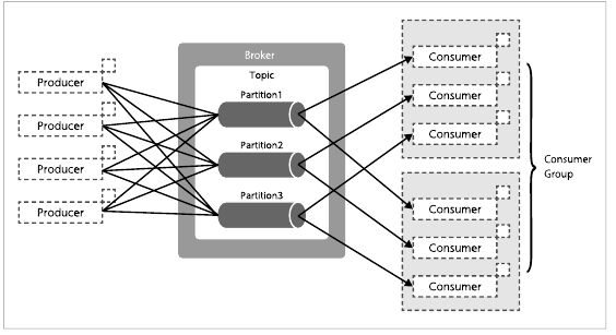 - 단일 어플리케이션 안에서 여러 컨슈머가 단일 토픽이나 여러 파티션에서 메시지를 취득하는 방법