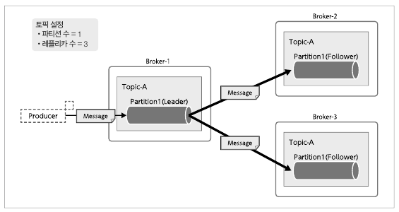 - Replica 중 하나는 Leader이며, 나머지는 Follower라 한다.