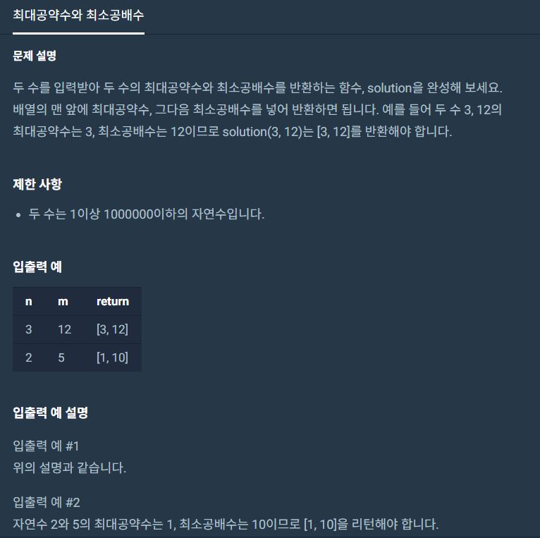 int[] answer = new int[2]; // 최대 공약수, 최소 공배수를 담을 배열