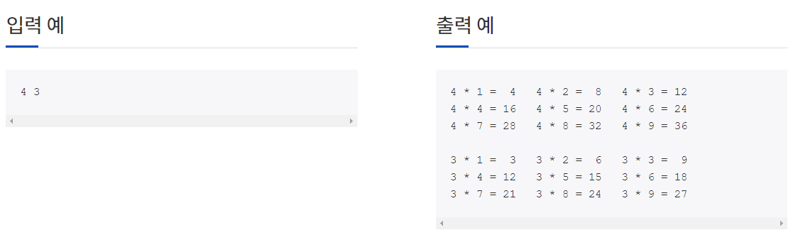 원하는 구구단의 범위를 입력받아 해당 구간의 구구단을 출력하는 프로그램을 작성하시오.