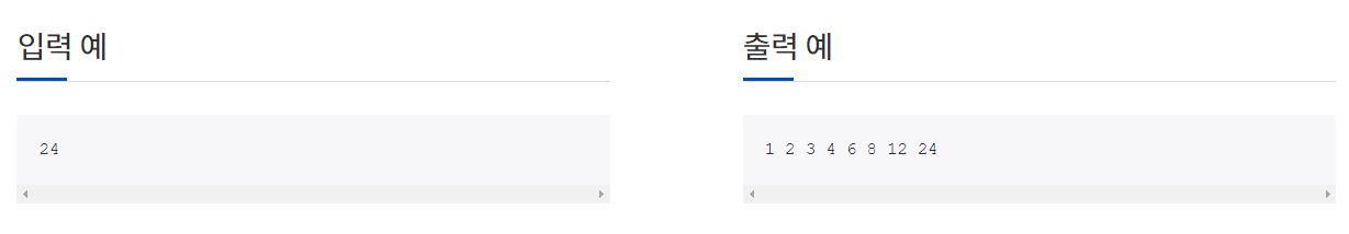 N의 약수를 작은 수부터 차례로 모두 출력한다.