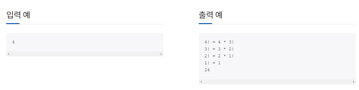 System.out.println(n + "! = " + n + " * " + (n - 1) + "!"); // 조건을 위한 출력